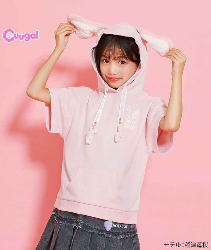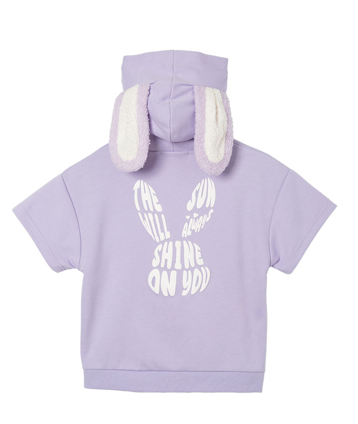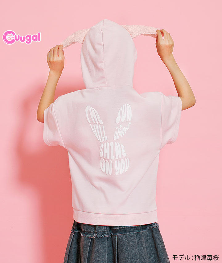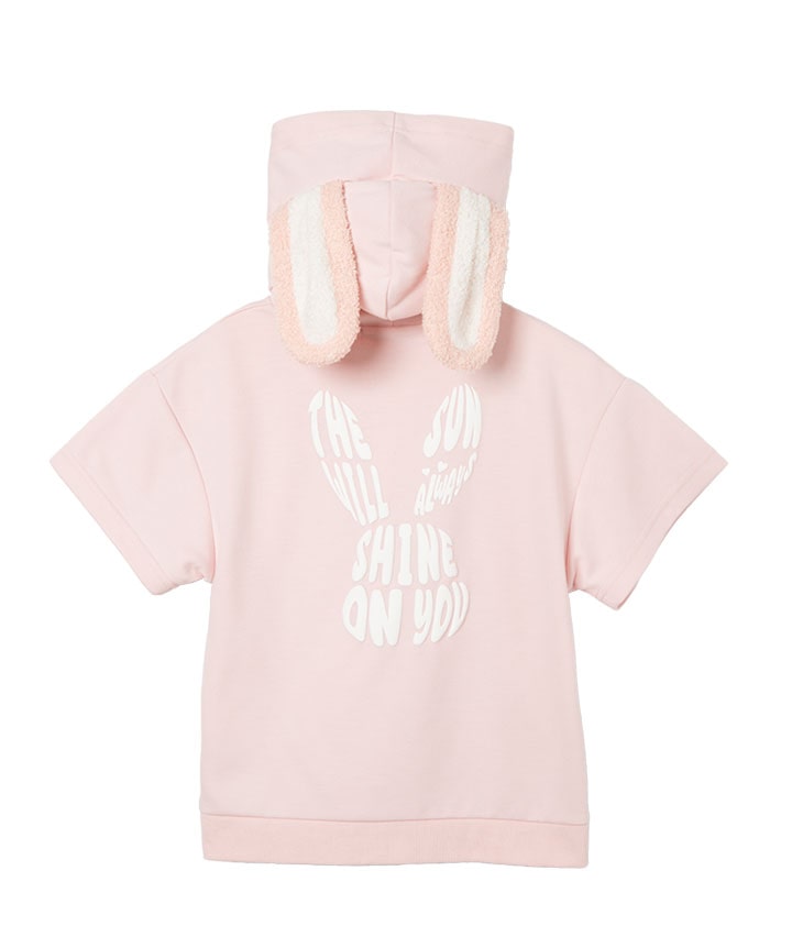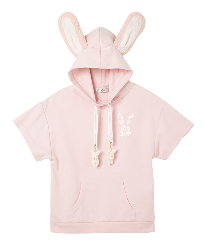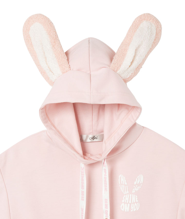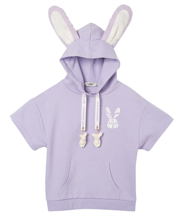 ・うさぎの耳付きのフードがかわいいプルパーカーです。スピンドル部分についたうさぎのチャームもポイント!