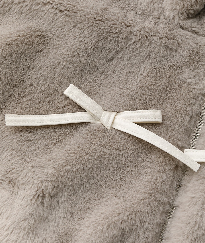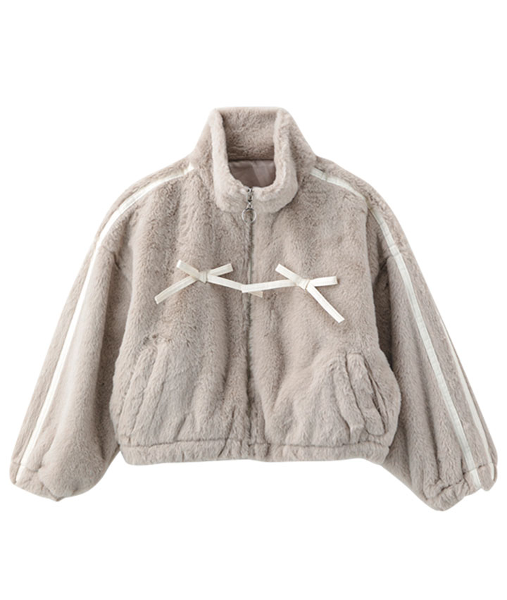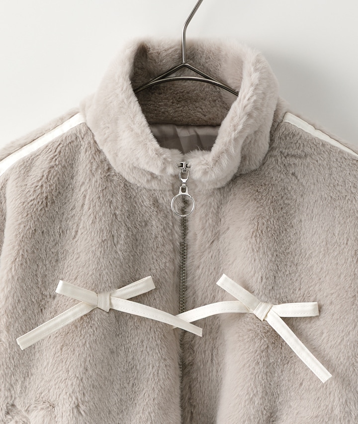・胸元のリボンデザインがかわいいボアブルゾンです。