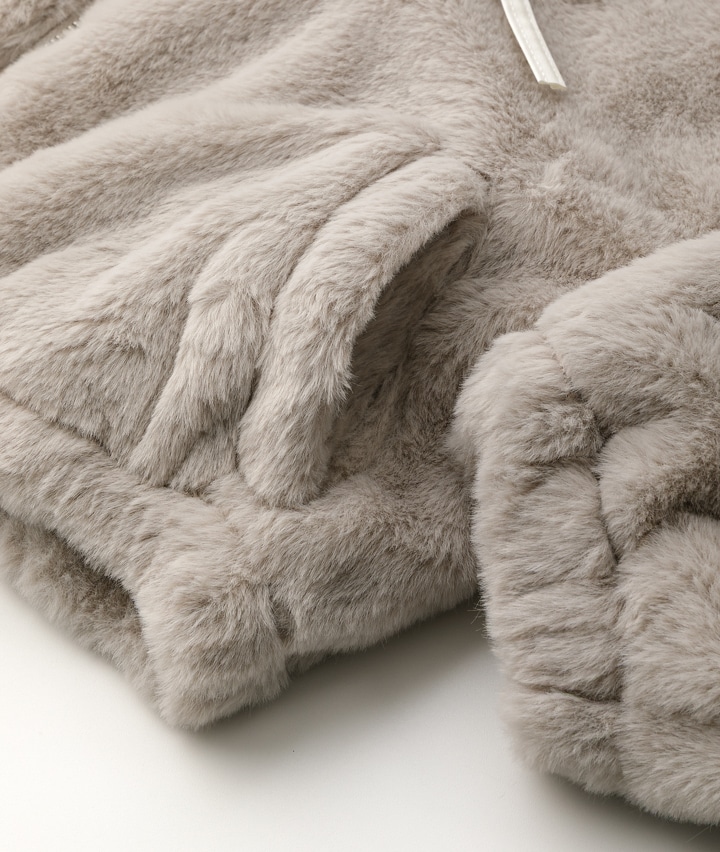 ファスナーや面ファスナーは閉じて洗濯してください。洗濯は手洗いにて押し洗いをしてください。部分的なつまみ洗いやもみ洗いはしないでください。手のひらで押し絞るようにして水気を取り、陰干しをしてください。白、淡色を含む製品は、蛍光増白剤の入っている洗剤を使用しないでください。濃色の場合は、汗や雨などで濡れた状態や強い摩擦等で他の製品に色移りする場合がありますのでご注意ください。他の物と分けて洗濯後、すぐに形を整えて干してください。この製品は合成皮革を部分使いした商品です。合成皮革部分に過度の摩擦及びアイロン掛けはお避けください。また、軽度な汚れは、水または中性洗剤を布に湿らせて拭き取ってください。直射日光を避け、乾燥した所で保管してください。合成皮革は時間の経過と共に劣化し剥離してくる特性があります。耐用年数は一般的に製造から約3年程度ですのでご了承ください。(製造年月 2025年10月)素材の特性上、着用中に他の衣料に毛羽がつくことがあります。その際はブラシ等を使用してください。水洗いにより毛並みが乱れる場合があります。毛並みが乱れた場合はブラシ等で毛並みを整えてください。毛玉が発生した場合は小さいハサミなどで丁寧にカットして処理してください。