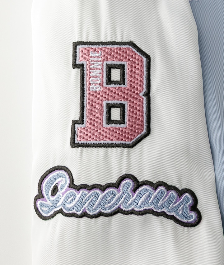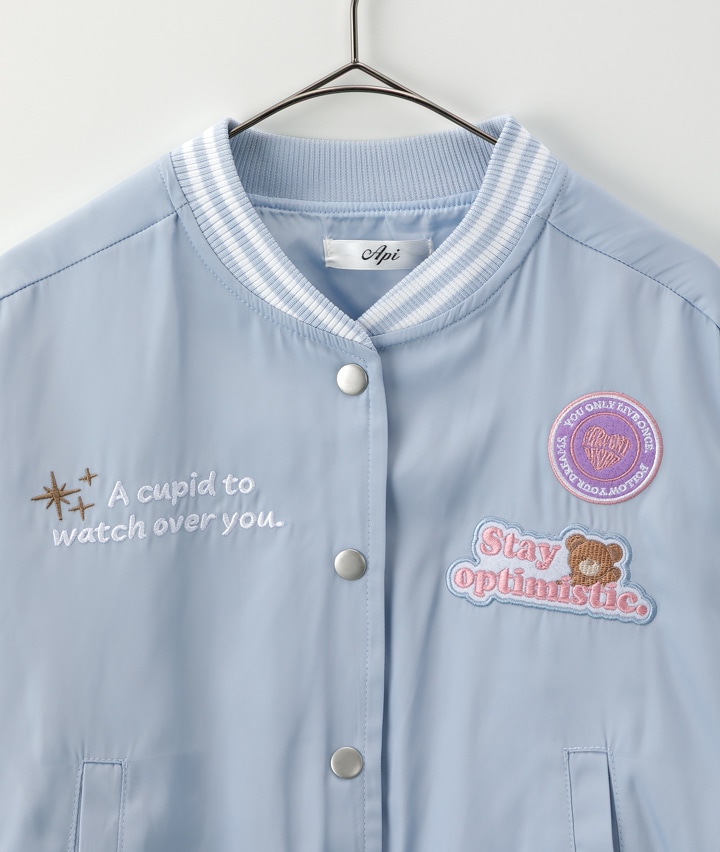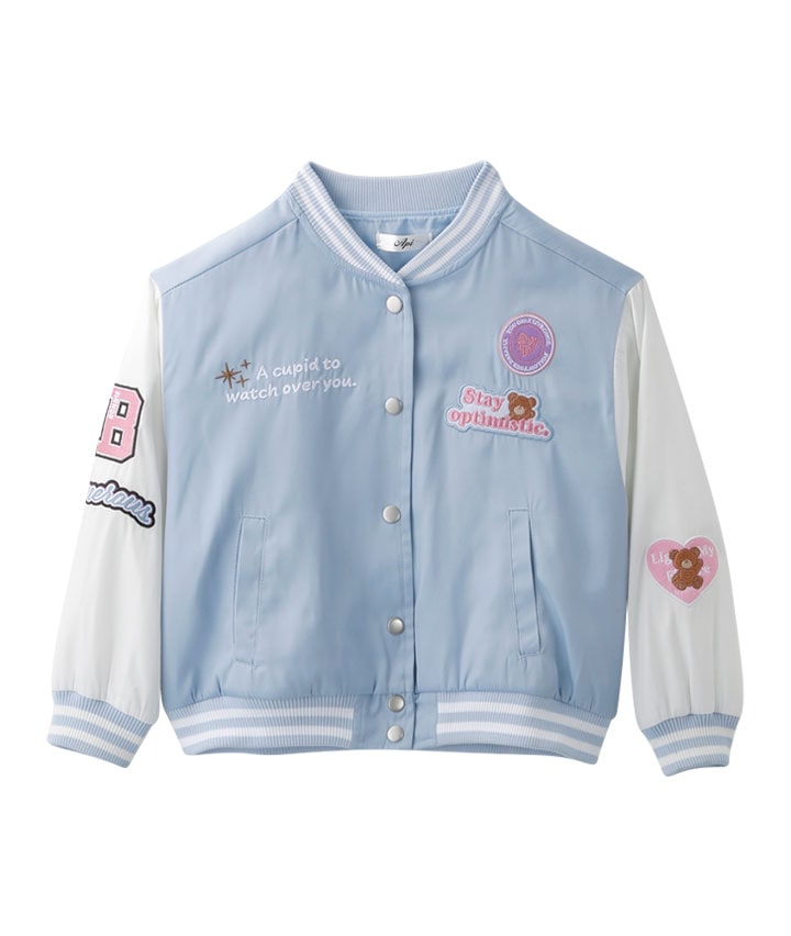 ・パステルカラーの配色にくまのワッペンがかわいいスタジャンです。