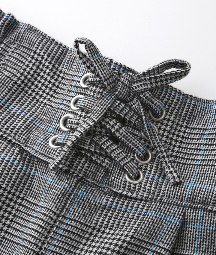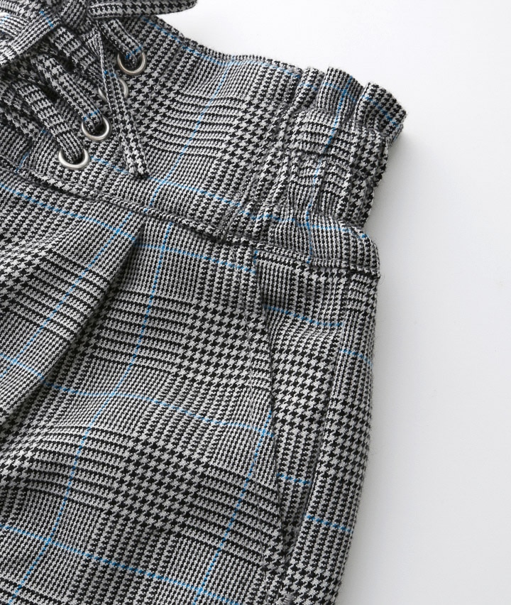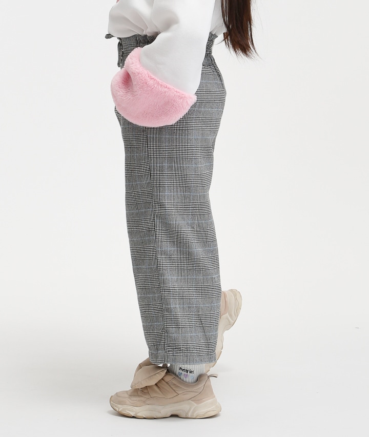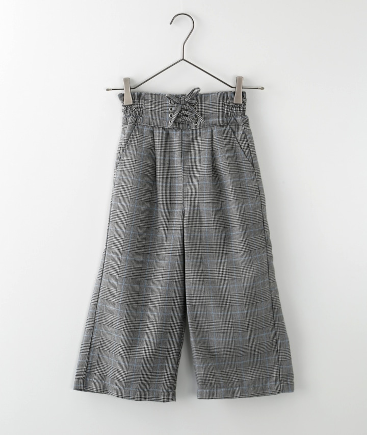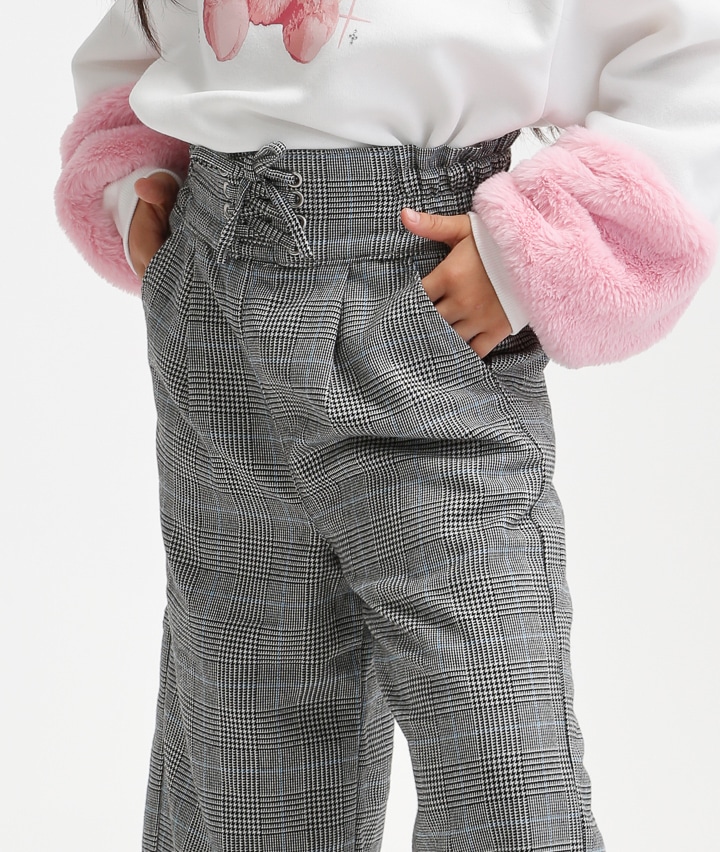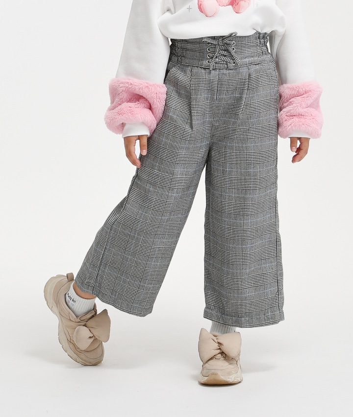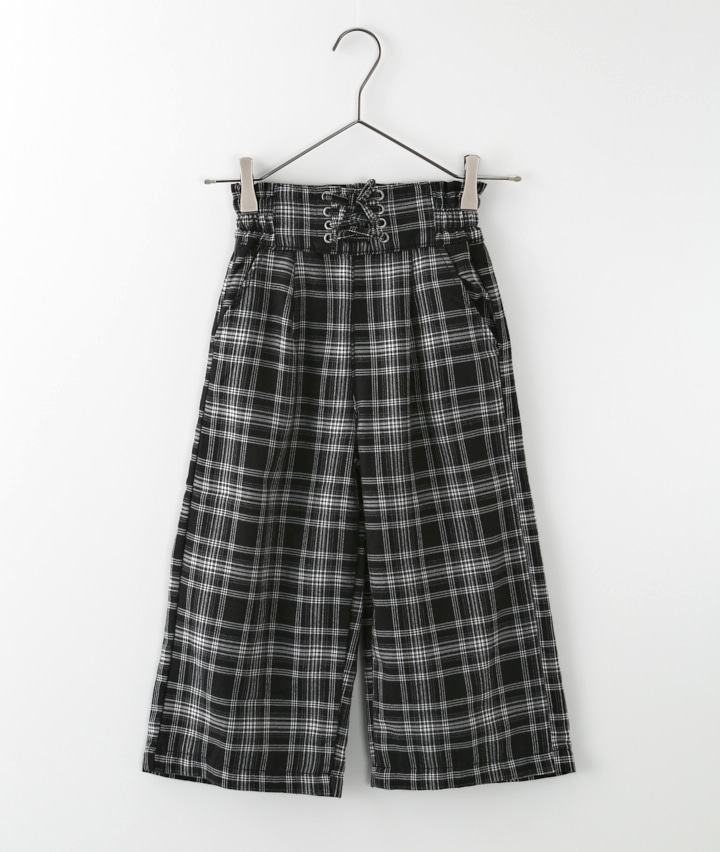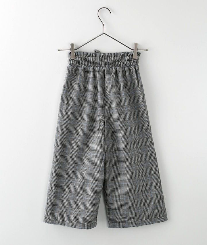 裏フリースチェック柄ワイドパンツ