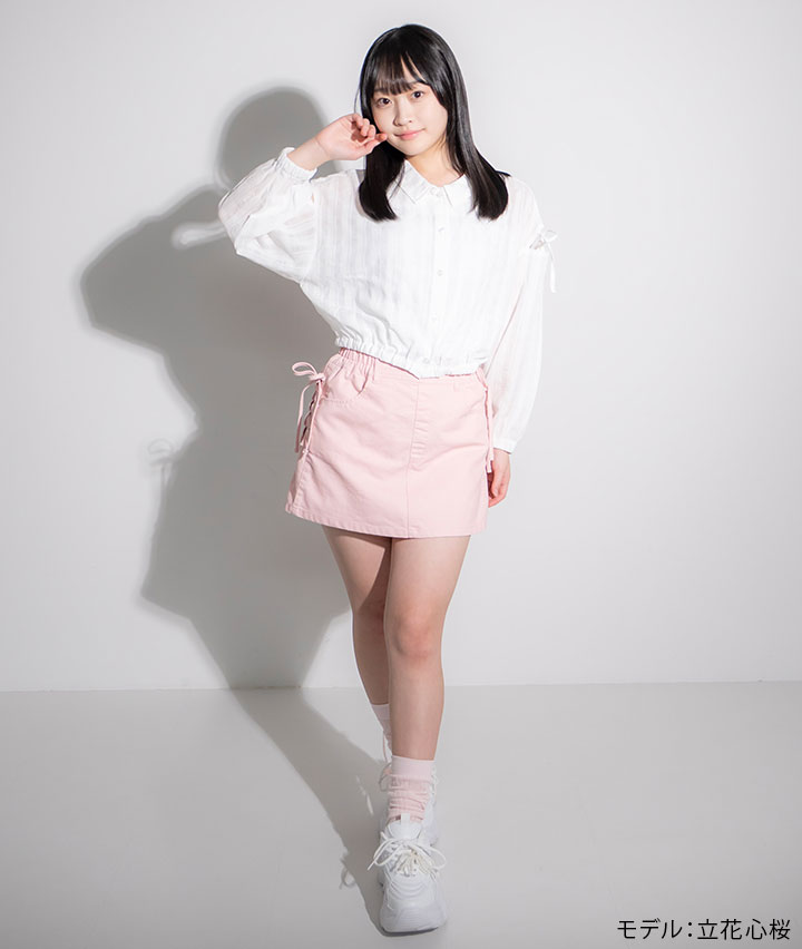 ・サイドのレースアップデザインがかわいいスカートです。インナーパンツ付きでアクティブに動いても安心。