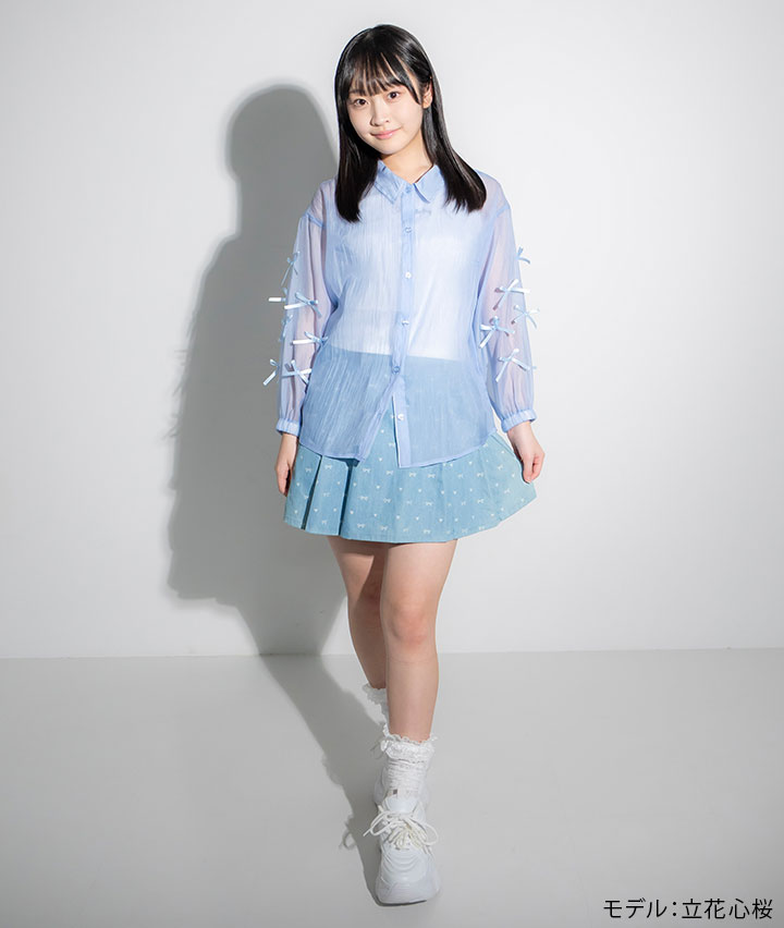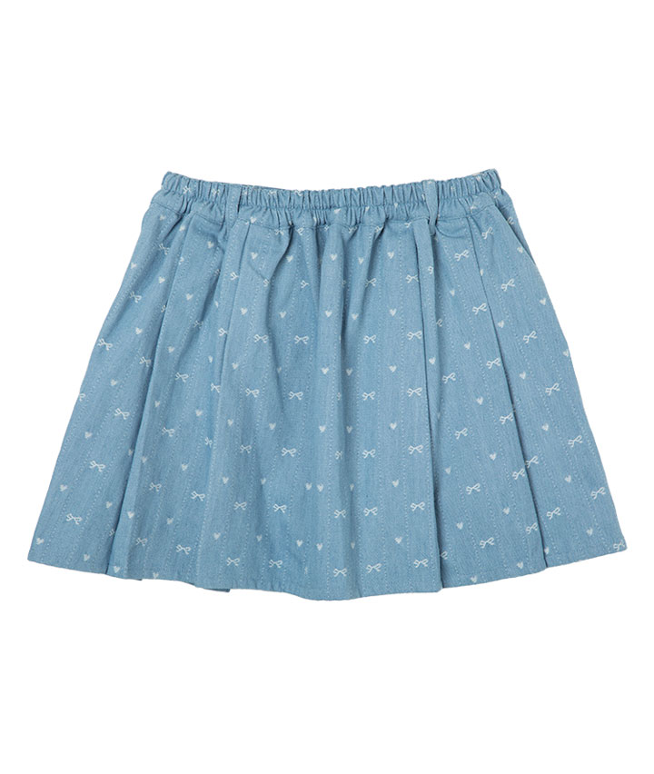・リボンモチーフの総柄デザインがかわいいスカートです。インナーパンツ付きでアクティブに動いても安心。