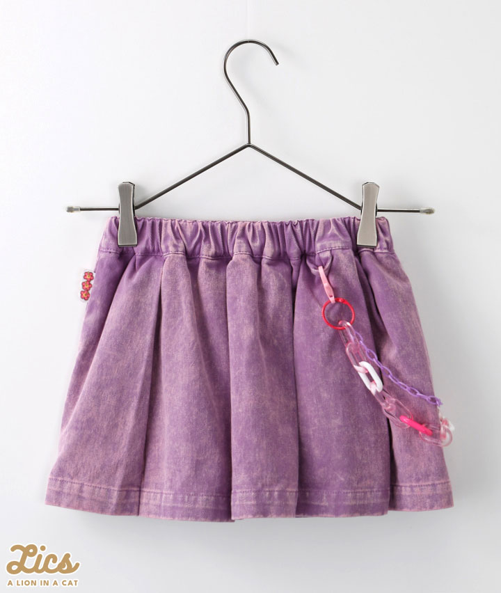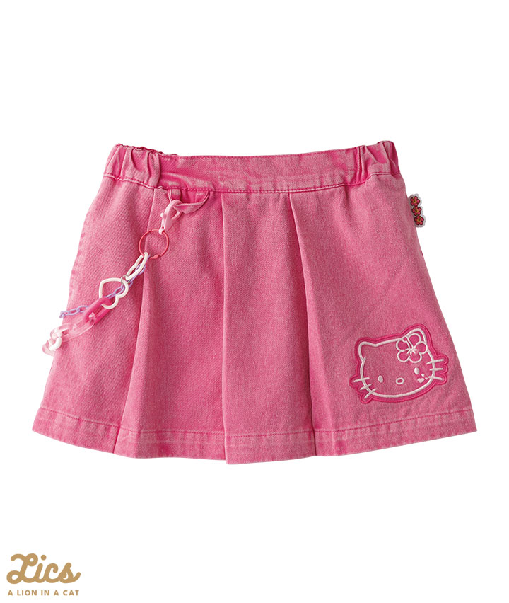 ・ママインフルエンサープロデュースブランド【LICS】からサンリオキャラクターズコラボアイテムが登場!チェーンとカラーデニムでコギャル風コーデにピッタリなスカートです。インパンツ付きでアクティブに動いても安心。