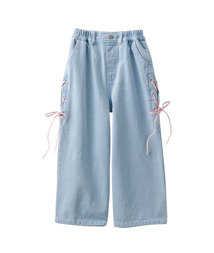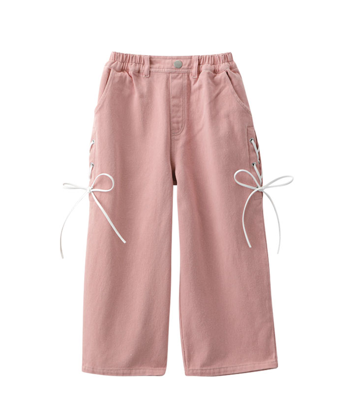 ・サイドのオーガンジーリボンがかわいいワイドパンツです。