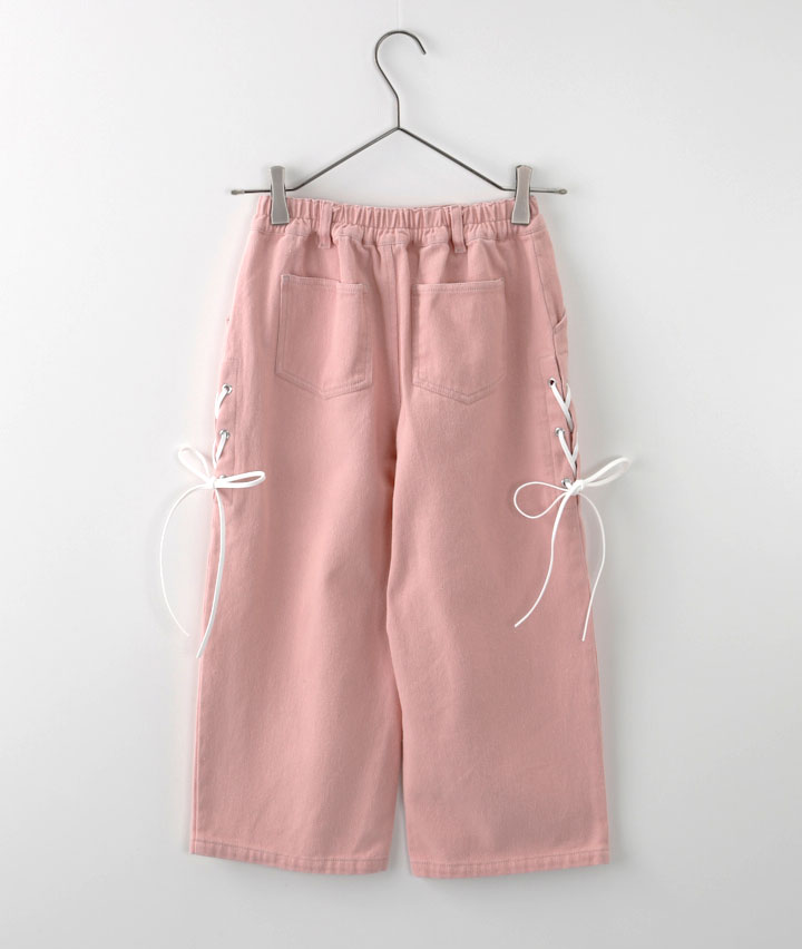 ・サイドのオーガンジーリボンがかわいいワイドパンツです。