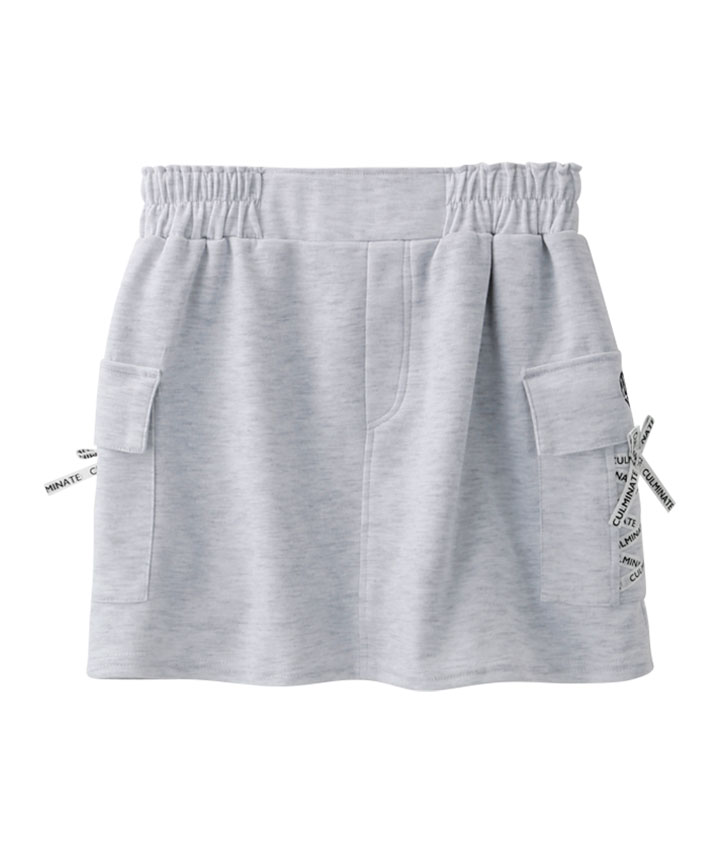 ・カーゴポケットのレースアップリボンが目を引く、やわらかいカットソー素材のスカートです。パンツ仕様に裏地付きでアクティブに動いても安心です。