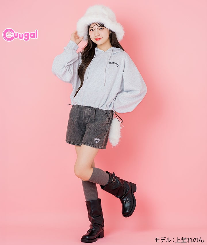 ・ケミカル加工がかっこいいデニムショートパンツです。しっぽチャーム付き!