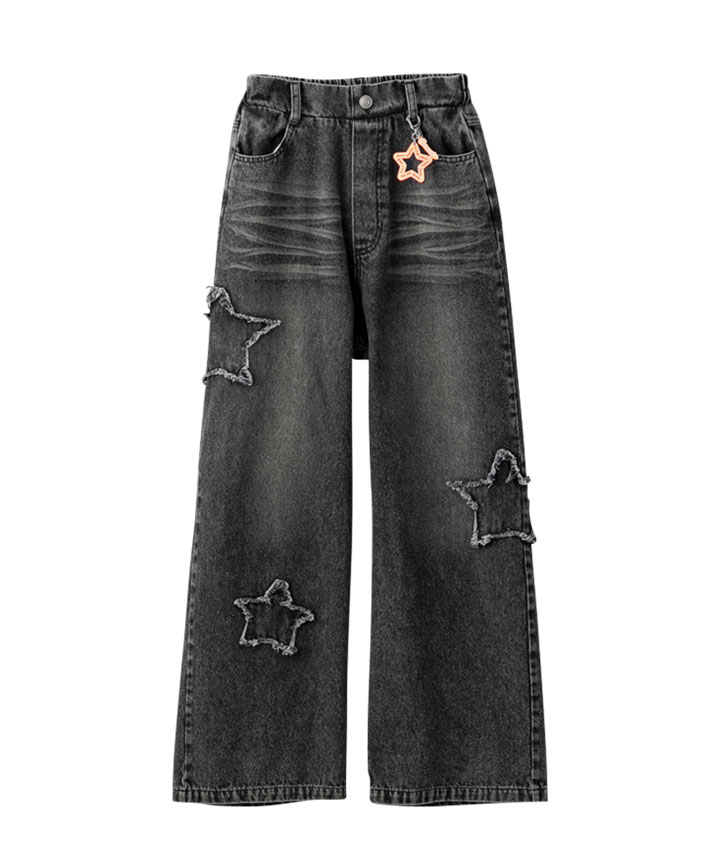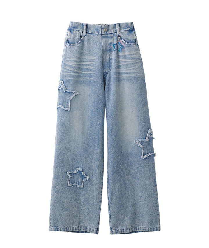 ・星型のワッペンが叩きつけられたケミカル加工のデニムパンツです。星型のチャーム付き!