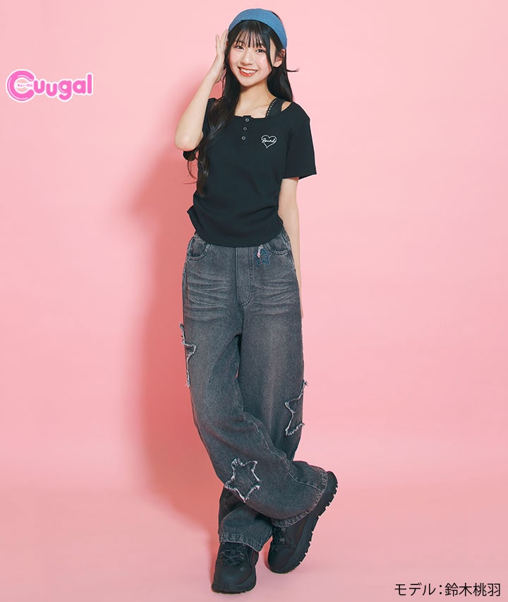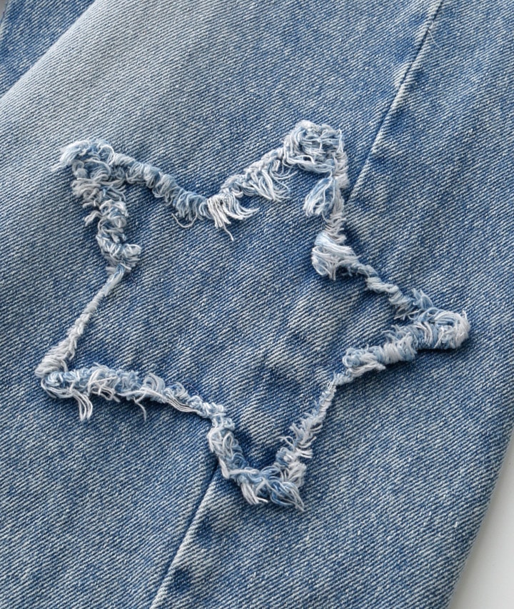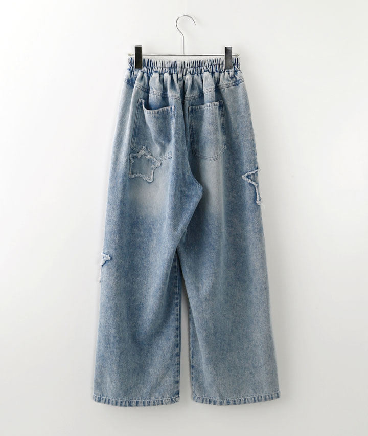 ・星型のワッペンが叩きつけられたケミカル加工のデニムパンツです。星型のチャーム付き!