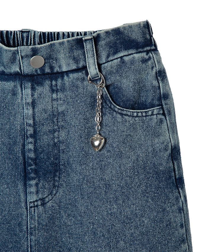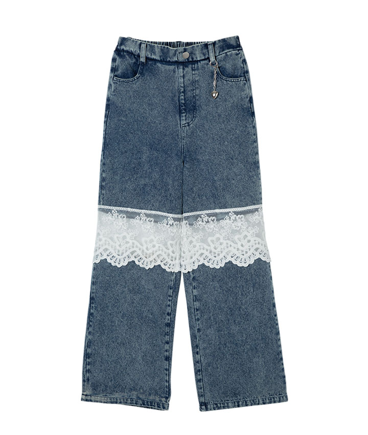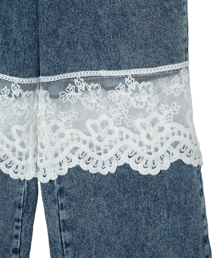 ・レースとケミカルデニムの甘辛の切替がかわいいロングパンツです。