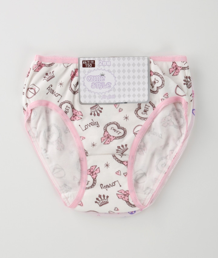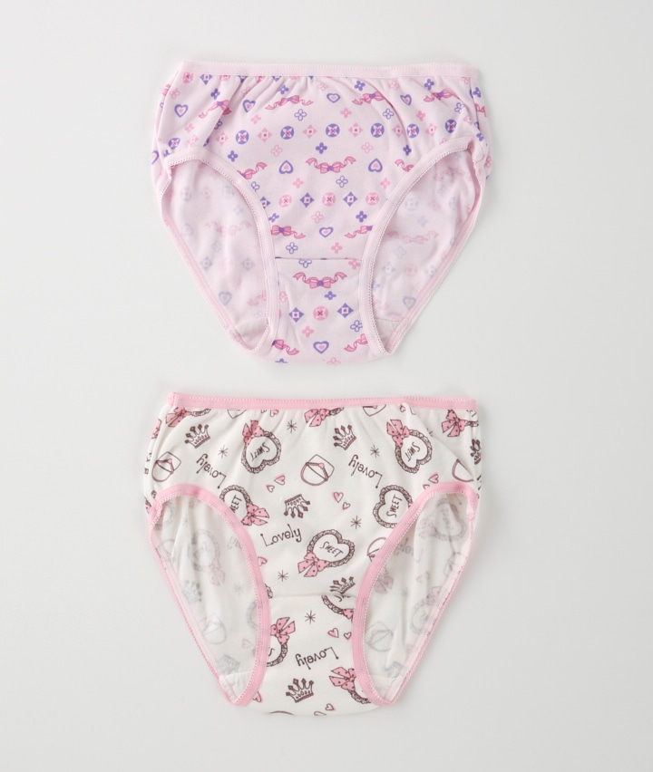 (雑貨柄と幾何柄)(綿混)(2枚組)女児ショーツ