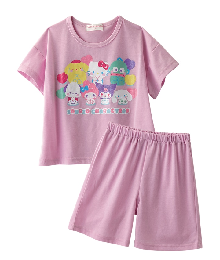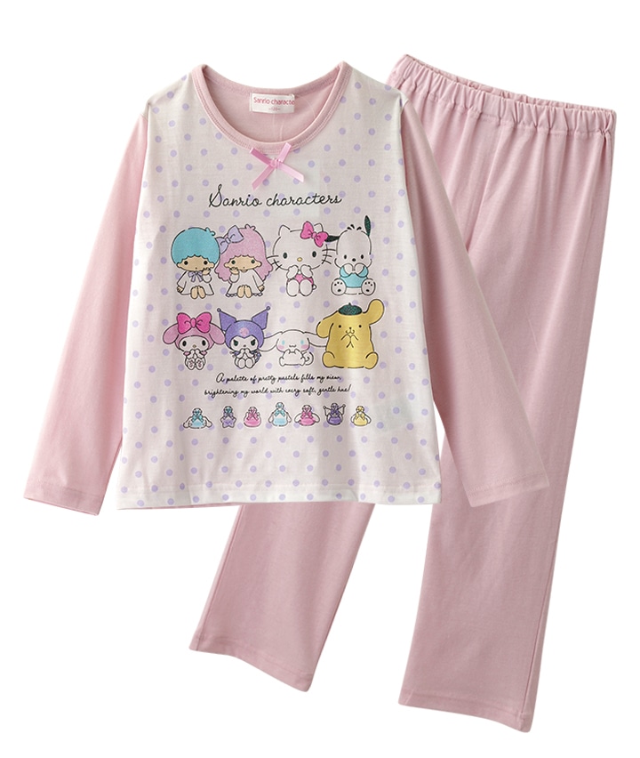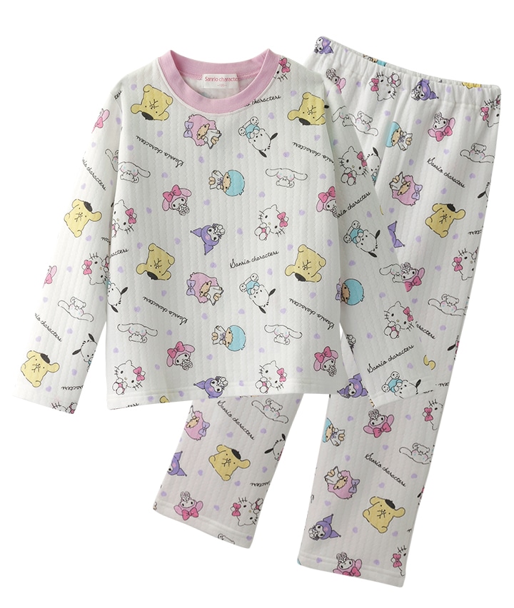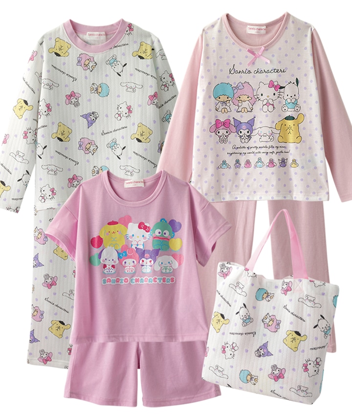 ・サンリオの人気キャラクター「キャラクターズ」のパジャマハッピーバッグです。天竺長袖パジャマとキルトパジャマ、半袖天竺パジャマの3点組、専用バッグ入り。