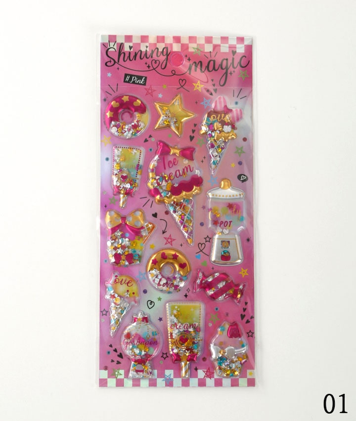 ・人気沸騰中のぷにぷに素材のキラキラステッカーです。一部のシールは中身がシャカシャカ動くのが特徴的です。