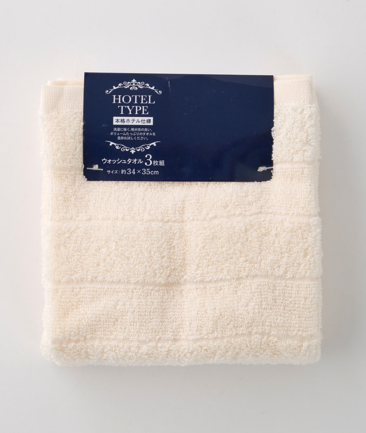 ・34×35㎝のホテルタイプおしぼりタオル。しっかり手触りが特徴です。同色3枚組のお得セットです。