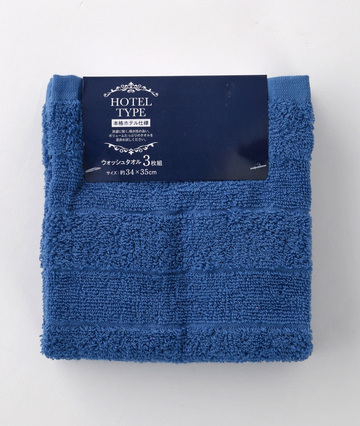 ・34×35㎝のホテルタイプおしぼりタオル。しっかり手触りが特徴です。同色3枚組のお得セットです。