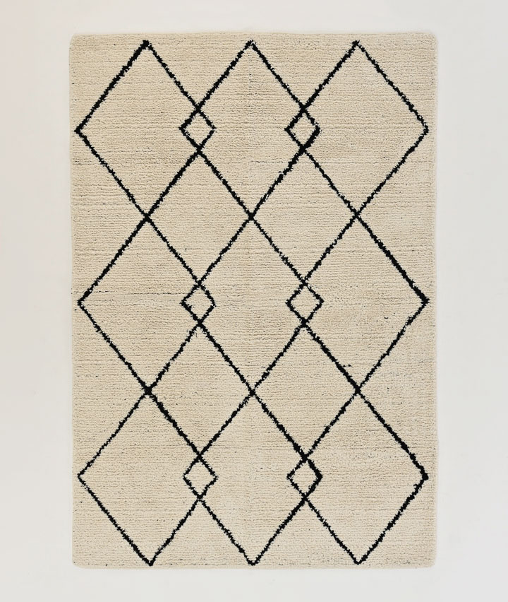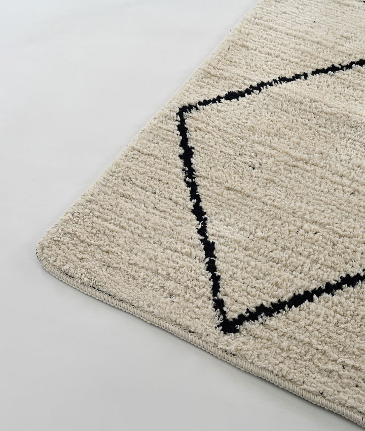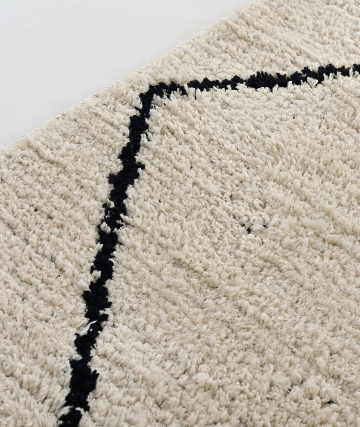 部分的な汚れは、布に薄めた中性洗剤を含ませ、軽く部分的に叩くように拭き、その後水洗いした布で洗剤を拭き取り、最後は乾拭きして陰干ししてください。全体的な汚れは、ご自宅での手洗い、もしくはカーペット専門のクリーニング店へご相談ください。塩素系漂白剤のご使用はおやめください。入浴剤の入ったお風呂の残り湯のご使用はおやめください。手洗いはできますが、洗濯機では洗えません。手洗い機能がついている洗濯機であっても、必ず洗濯機の説明書をご確認の上、ご使用ください。タンブラー乾燥機のご使用はおやめください。脱水後はすぐに形を整えて陰干しをしてください。濡れたまま長時間放置すると色移りの原因となります。\nご使用環境やご使用方法により塩化ビニル、フローリング等、床材の変色が起こることがあります。特にご新築の床材、ワックスがけ後、ご注意ください。開封直後は素材特有のにおいがあります。気になる場合は、風通しの良い場所で陰干しをおこなってください。においが軽減されます。パッケージの形状でしばらく折りじわが発生します。2~3日程度でなじみますが、つまづき等の転倒にご注意ください。カーペット・ラグ自体滑りにくい加工を施していますが、床面の状態によっては滑ることがありますのでご注意ください。長時間敷いたままでのご使用は避け、月に数回の陰干しをしてください。長い間一定の場所に敷いたままにしますと、床面にラグの形状や模様の跡が付着することがあります。1週間に1度程度、ラグの位置を変えて、敷いている床面の掃除をしてください。床暖房で使用する場合は、裏面の樹脂と床面の状態をこまめに確認してご使用ください。ラグ自体は床暖房の上にしようされても問題のない仕様になっておりますが、ご使用の際は床暖房メーカーの取り扱い説明書をご確認ください。