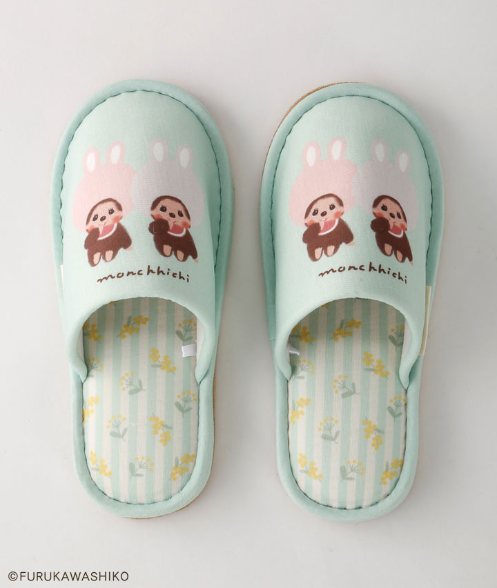 【04/07(火)10:00販売開始】【モンチッチ】スリッパ 中ストライプ花
