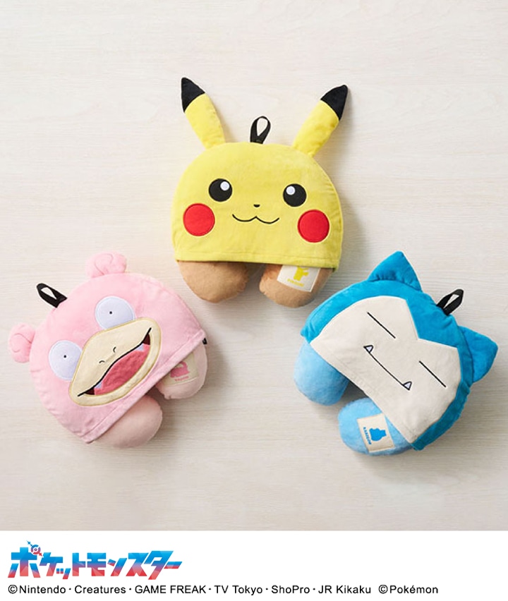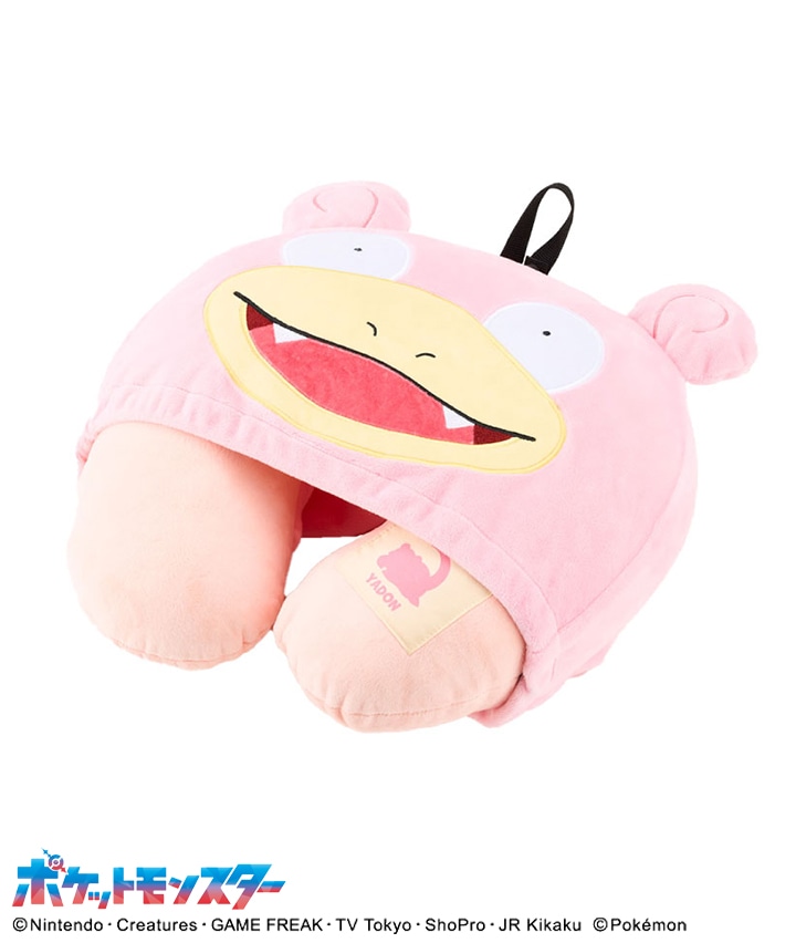 ・フードをかぶるとヤドンになりきれるフード付ネックピローです。ネックピローは綿がしっかりと入っていて、フリース素材が気持ちよくふかふかなので、長時間の移動も快適に過ごせます!